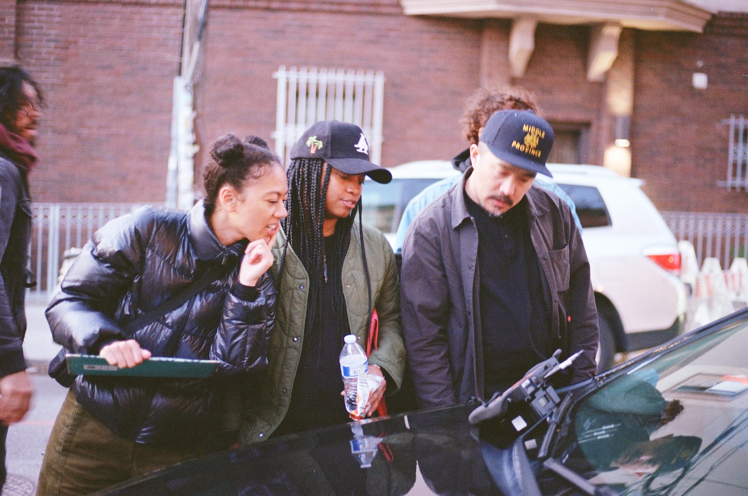 Directors Megz + Kimiko and DP Ray Huang on the set of their film Newbies.