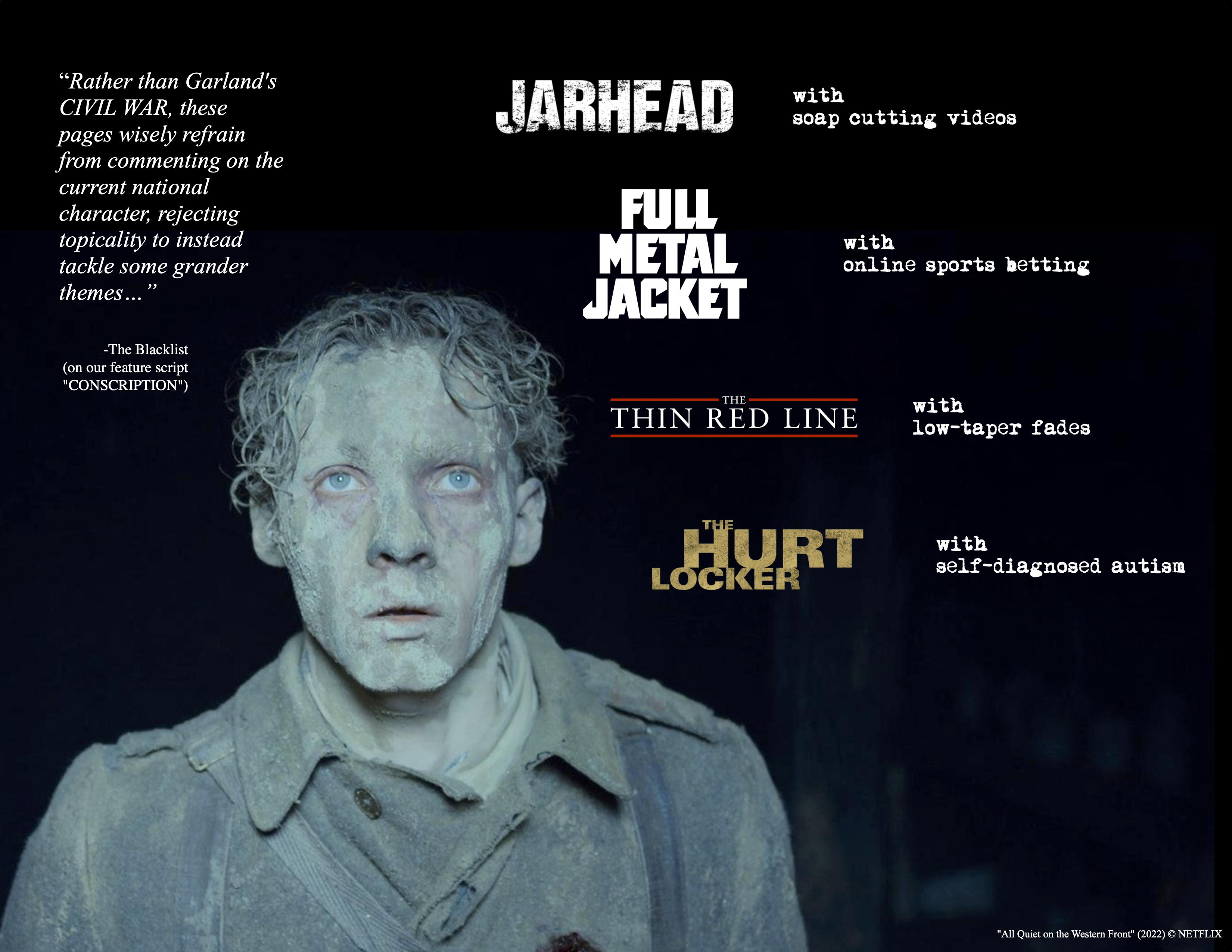 TBA ('Gil Thompson'): Gil is the typical American teen, anxious and chronically online, taking a gap year before college while he sorts himself out in a world changing far too quickly for anyone to keep up with. Like most kids his age, he is forced to grapple with the uncertainty of his personal future while barely believing there’s hope for any future at all. In the midst of this deepening uncertainty at the top of his adulthood, all of his fears are brought to fruition when he is drafted to war on the day of his high school commencement.